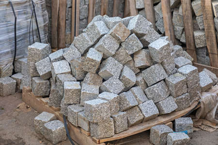 Blocks of gray granite bricks