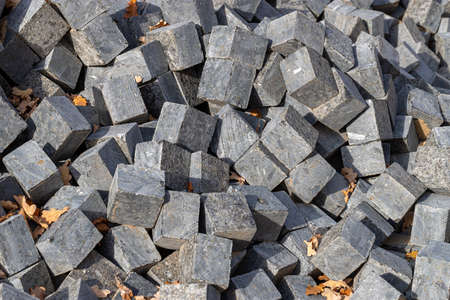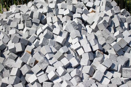 Background of gray building stone blocks. Many building blocks on a construction site