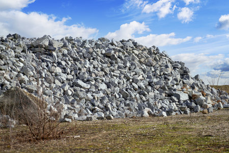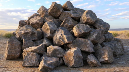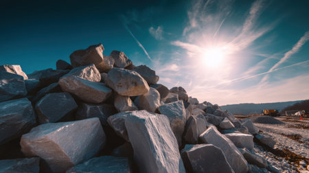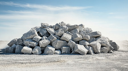 AI Generated. Massive Pile of Gray Rocks Under a Clear Sky - A Stunning Industrial Landscape