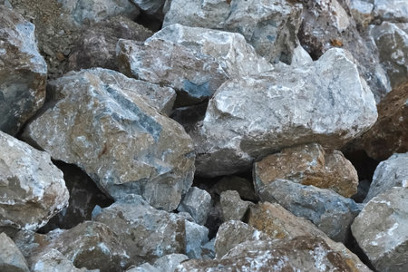 close up of granite stone rock chunks background, rock textures, river embankment, landscaping