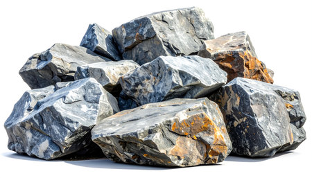 A simple isolated pile of rocks showcasing diverse textures and colors on a pristine white background. Ideal for nature and design themes.