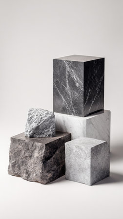 A unique collection of textured stones arranged minimally.