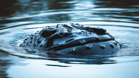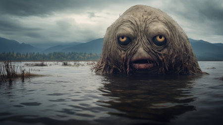 A mysterious monster or lizard floats on Loch Ness. selective focus. AI generated.