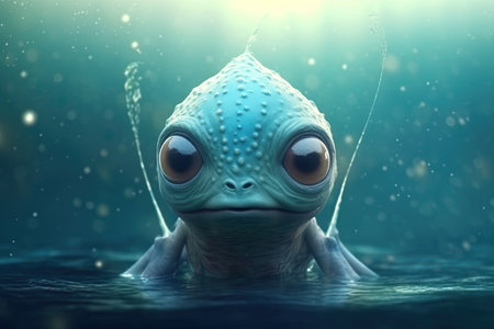 A mysterious underwater creature swimming in a blue aquatic environment. AI-generated.