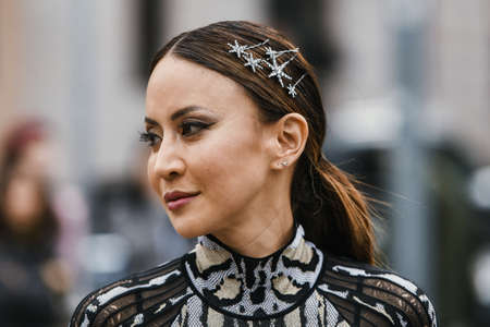 Milan, Italy - February 19, 2020: Street style appearance during Milan Fashion Week - streetstylefw20