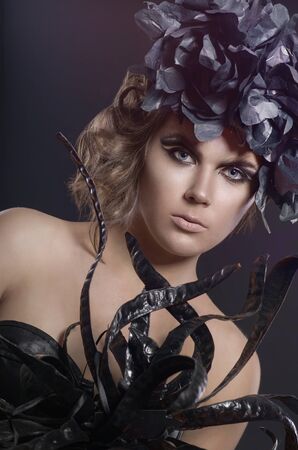 Closeup portrait of a beautiful young woman. Fashion art photo