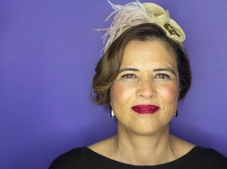Belarus, the city of Gomel, October 30, 2017. Opening of the children's library department.Portrait of a woman in a hat with a veil.Blonde in a hat with a veil