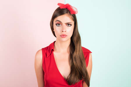 Woman with beauty face, facial portrait. Beautiful tender sensual young girl. Fashion model isolated in studio.