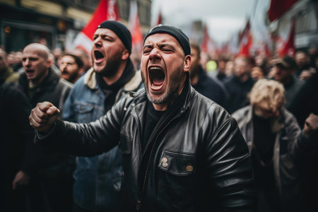Urban turmoil, street riots civil unrest and societal tensions, chaos and intensity of public protest and demonstration in the heart of the city