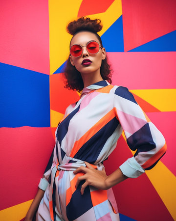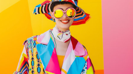 Vibrant fashion statement: colorful patterns and bold accessories in modern outfit.