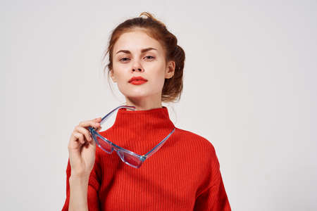 attractive woman Red lips attractive look Studio fun model