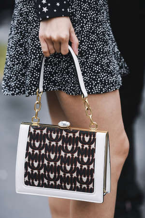 Milan, Italy - February 23, 2019: Street style – Purse detail after a fashion show during Milan Fashion Week - MFWFW19