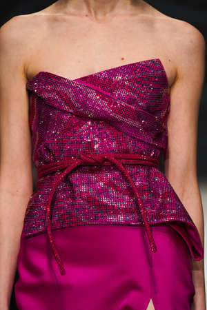 Fashion show. Unrecognisable model. Close-up details of fashionable clothes