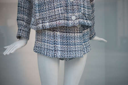Closeup of classic mini skirt short on mannequin in a fashion store showroom