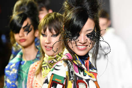 New York, NY, USA - September 7, 2017: Models walk runway for the Desigual Spring/Summer 2017 runway show during New York Fashion Week at Skylight Clarkson Sq., Manhattan