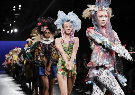 NEW YORK, NEW YORK - SEPTEMBER 11: Models walk the runway finale for Libertine during New York Fashion Week: The Shows at Gallery II at Spring Studios on September 11, 2019 in New York City.