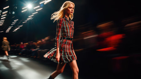 Elegant Blonde Model Strutting Down High Fashion Runway