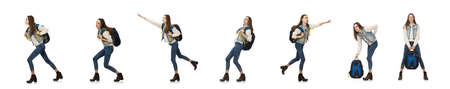 The pretty girl with rucksack isolated on white