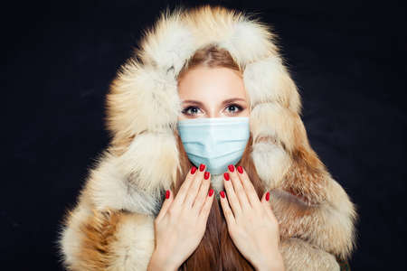 Portrait of woman wearing medical mask. Protection from catching disease. Pandemic of coronavirus concept.