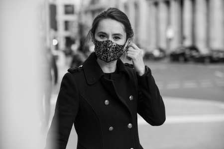 Reims France September 12, 2020 View of unidentified pedestrians with a face mask to protect themself from the coronavirus walking in the streets of Reims, a city in the Grand Est region of France