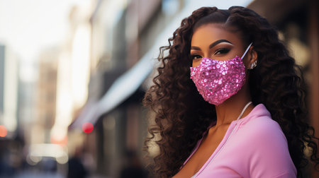 Protective mask with glitter. World epidemic danger. Corona virus minimal concept.