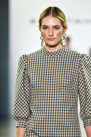 New York, NY, USA - September 6, 2017: A model walks runway for the Greta Constantine Spring/Summer 2018 Presentation during New York Fashion Week at Pier 59 Studios at Chelsea Piers., Manhattan