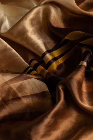 Folded silk golden tone cloth. Crop view of fashioned fabric piece