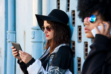mobile photography and selfie trend. young stylish girl taking photoof herself using smartphone. social media bloggers lifestyle.