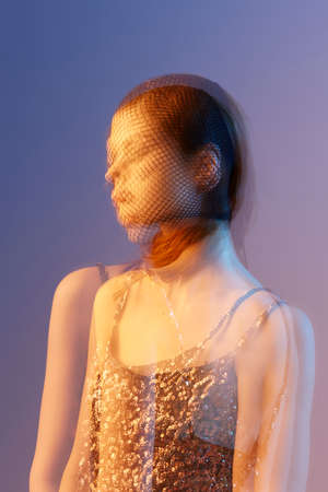 portrait of a young beautiful woman with a net on her face
