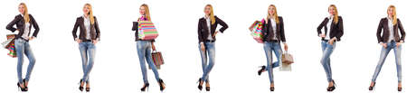 Beautiful woman with shopping bags isolated on white