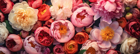 Peony and roses, valentines day background, web banner format