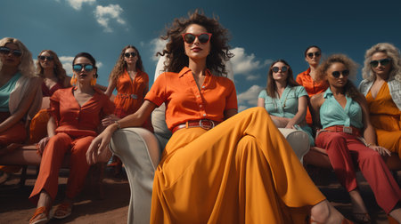 A group of young fashion models posing together in vibrant, trendy outfits, capturing the spirit of unity and diversity in the fashion industry. Generative Ai