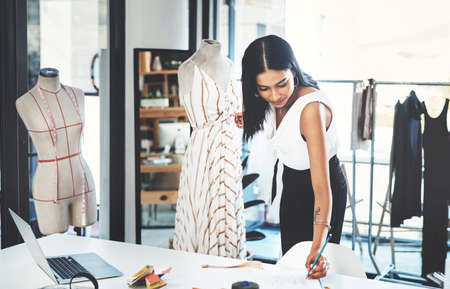 My designs are different and loved my many. a successful young fashion designer working on her latest design.