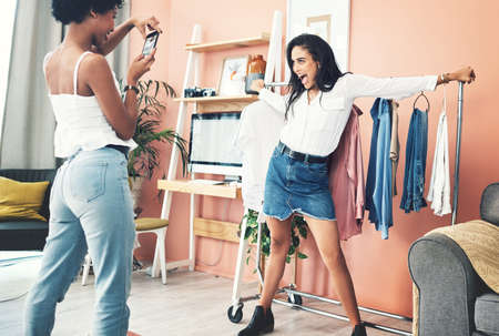 Online Business Using Smartphone. Photographing Fashion Clothes