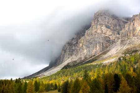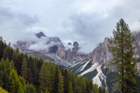 beautiful landscape - overcast day Dolomites mountains view at the cloudy day, Italy