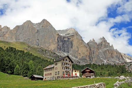 alpine hut at the foot of the mountain in Val di Fassa