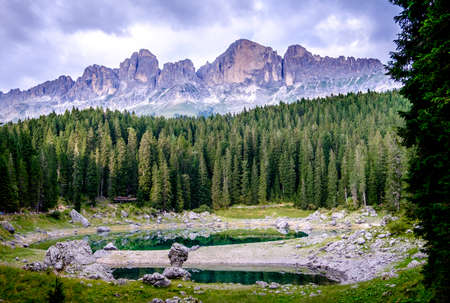 karerlake in italy - Lago di Carezza - at the background the dolomites