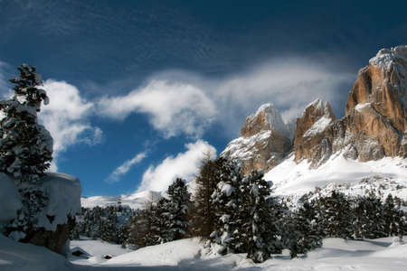 Mountains in Dolomites, Italy. Beautiful winter scenery.