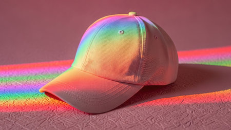Baseball cap with rainbow effect. Studio shot on pink background.