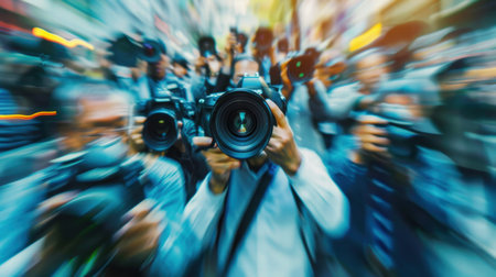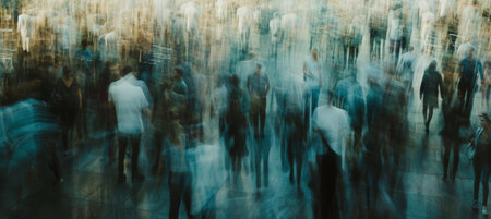 A documentary filmmaker captures the essence of street art as a muralist paints a vibrant graffiti piece while commuters rush by in blurred motion illustrating the contrast betwee