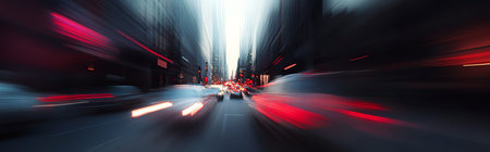 Abstract background of defocused light motion blur. Glowing urban backdrop, heavy night traffic city glimmers, bokeh, sparkle shiny purple and red lines wallpaper