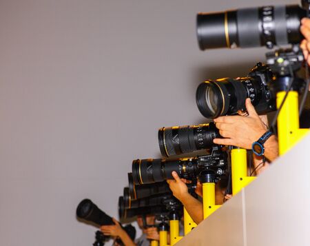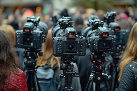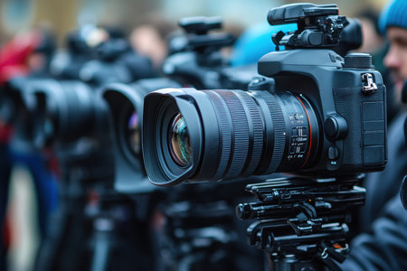 A Row of Professional Cameras Set Up for a Press Conference or Event