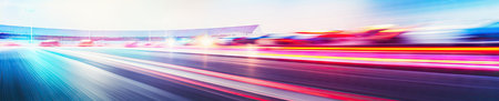 Speed spectacle! Blurred racetrack with starting or ending line captures the intensity of high-speed competition, thrilling spectators.