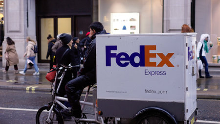 FedEx delivery guy on a bike - LONDON, UK - DECEMBER 20, 2022