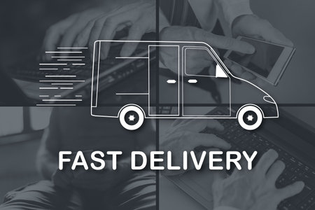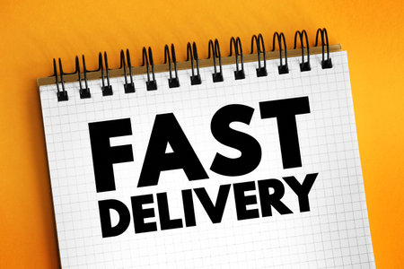 Fast Delivery - prompt and timely transportation or shipping of goods or services to the intended recipient, text concept on notepad