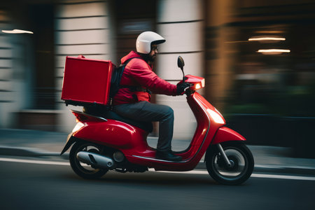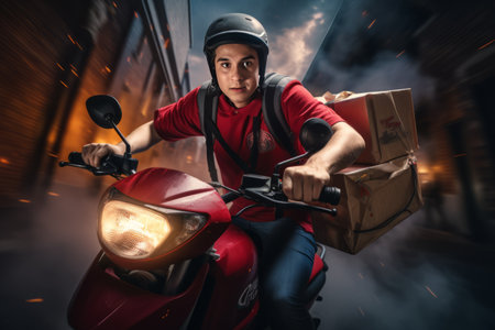 delivery boy scooter. Pizza boy. fictional person. Generate AI