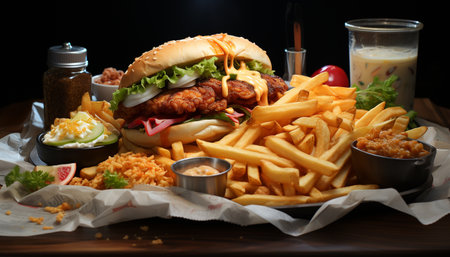 Grilled beef burger with cheese and fries generated by artificial intelligence