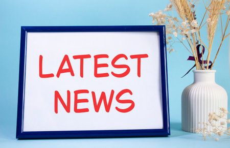 Latest News text with speech bubble top view on blue background