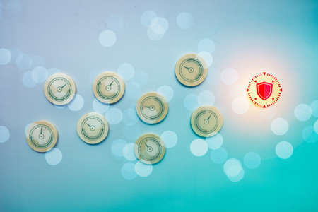 Money bag and with a shield. Savings insurance concept. Template Copy space for text.