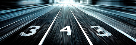 Track lanes numbered 1 to 3 stretch into the distance, highlighting minimalist design and subtle light shadows along the surface in a serene atmosphere.